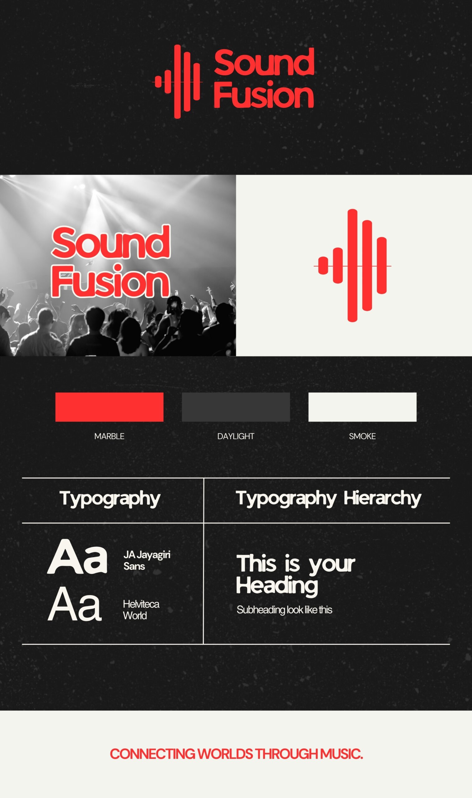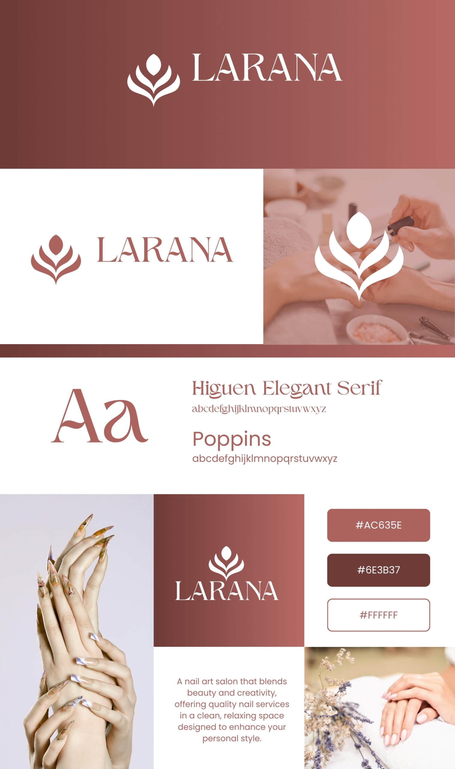 A mini brand book that outlines logo usage, spacing, typography, color palettes, and visual guidelines.