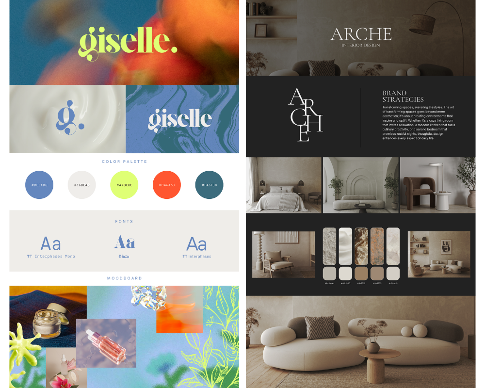 Browse through brand identity packages we’ve crafted, from modern minimal to bold and colorful, each tailored to reflect the brand’s mission and audience.